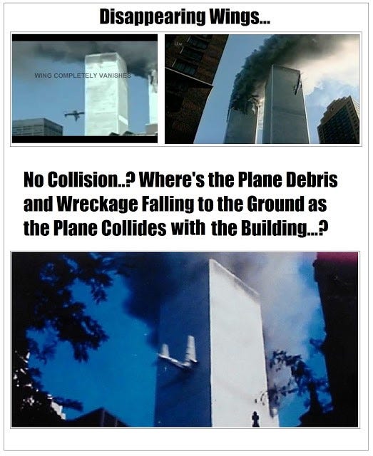 The prominent video fakery message circulated by the so-called researchers did a good job, as I didn't check their theories/hypothesis, as I took it for granted for 6 years that they had been given me all the correct answers to the anomalies which I observed such as, no crash physics and disappearing wings in the videos, thus believing the plane was a CGI plane, which had been inserted or composited into the videos, which led me to believe all the plane videos and photographs were fake.