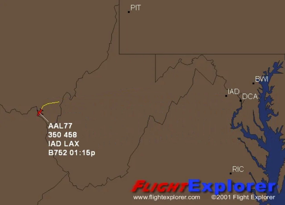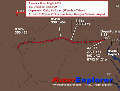 Is it also just a coincidence that Flight 77 was lost over Ohio and the American West Airlines airplane took-off from CHM, Ohio at 8:40 a.m., just 16 minutes before Flight 77’s transponder is switched-off. See below: http://z15.invisionfree.com/Loose_Change_F...=4371&st=30