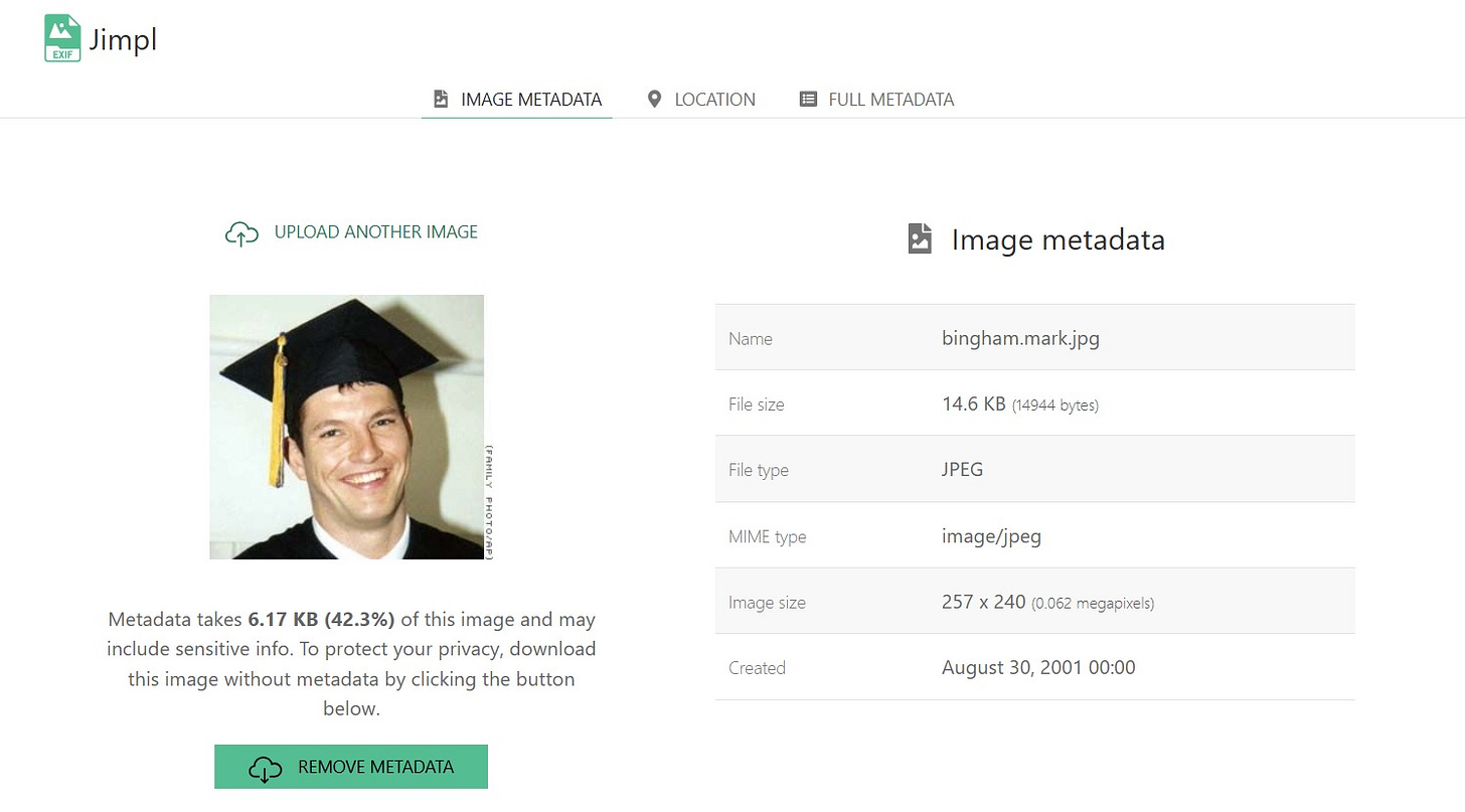 Wow amazing! I just double checked and confirmed the Exif Data is indeed August 2001! https://web.archive.org/web/20030703033856/http://edition.cnn.com/SPECIALS/2001/memorial/people/1607.html and https://jimpl.com/results/TAm1D6gxy9FG1zSw2ncercdH?target=exif