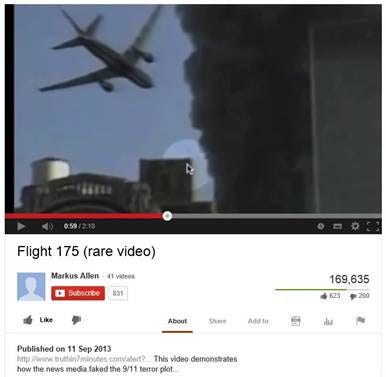There appears to be two vital areas of the psychological operation. One, is to promote the idea that all the 9/11 videos are fake, to account for the anomalies captured in the 9/11 videos of Flight 175, such as, disappearing wings, impossible plane speed and the damage not consistent with real plane crashing into a steel and concrete building. The other layer is to promote the idea of real planes being used on 9/11.